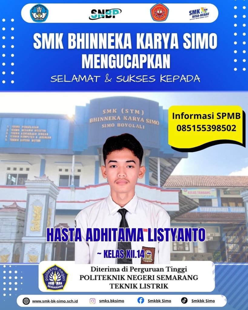 Selamat & Sukses kepada peserta didik SMK BHINNEKA KARYA SIMO yang LULUS Seleksi Nasional Berbasis Prestasi (SNBP) Tahun 2026